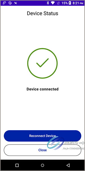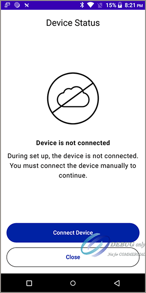 - Before you start the server, the Device Status screen shows theDevice is not connectedmessage. TapConnect Device.