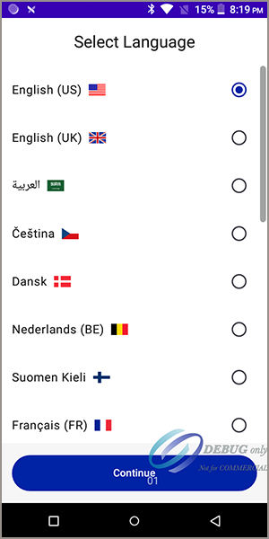 - On the Select Language screen, choose the language you want to use on the terminal. TapContinue.
