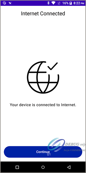 - When your device is connected to the internet, the Internet Connected screen appears. TapContinue.