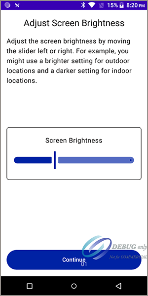 - On the Adjust Screen Brightness screen, move the slider left or right to adjust screen brightness. TapContinue.